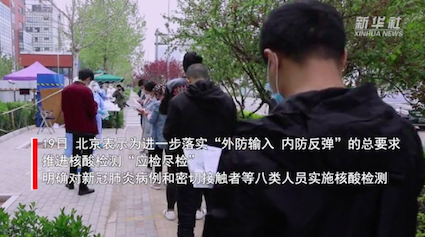 記者了解到,為進(jìn)一步落實(shí)“外防輸入、內(nèi)防反彈”的總要求,推進(jìn)核酸檢測(cè)應(yīng)檢盡檢,北京疫情防控領(lǐng)導(dǎo)小組明確對(duì)八類人員實(shí)施核酸檢測(cè)。伴隨復(fù)工復(fù)產(chǎn)的持續(xù)推進(jìn)和入住酒店的相關(guān)要求,越來越多的人面臨核酸檢測(cè)需要。