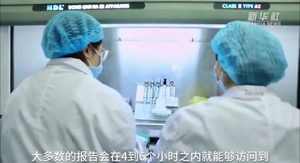 白興華介紹,若樣本中含有新冠病毒,隨著擴(kuò)增反應(yīng)的進(jìn)行,檢測(cè)系統(tǒng)可觀察到熒光信號(hào)的顯著上升,從而判定受檢者是否感染。隨后,受檢者可在線上查詢檢測(cè)報(bào)告。