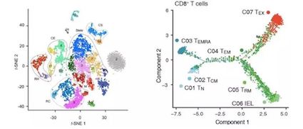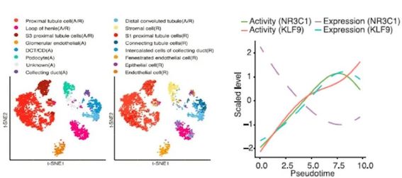 圖6 細(xì)胞群預(yù)測(左) 圖7 轉(zhuǎn)錄調(diào)控機(jī)制(右)