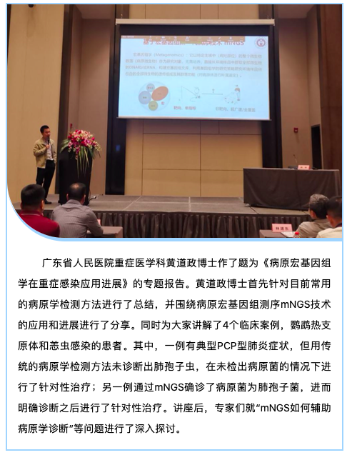 日前,福建省重癥醫(yī)學(xué)培訓(xùn)會——中國重癥醫(yī)學(xué)多學(xué)科精髓(MCCRC)培訓(xùn)班在福州召開。本次培訓(xùn)班邀請了省內(nèi)外知名專家圍繞重癥醫(yī)學(xué)領(lǐng)域新技術(shù)的發(fā)展等內(nèi)容進(jìn)行了專題報告,其中,廣東省人民醫(yī)院重癥醫(yī)學(xué)科黃道政博士及博奧晶典產(chǎn)品總監(jiān)劉瑩瑩博士受邀出席,并作了題為“病原宏基因組學(xué)在重癥感染應(yīng)用進(jìn)展”和“病原宏基因組學(xué)報告解讀”的專題報告,報告受到福建省醫(yī)學(xué)會重癥醫(yī)學(xué)分會主任委員、福建醫(yī)科大學(xué)附屬第一醫(yī)院ICU主任林建東教授的支持與點評。