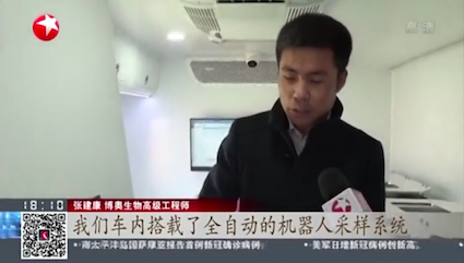 全集成新冠檢測移動實(shí)驗(yàn)室接通220V民用電即可正常工作,同時它自身配備發(fā)電系統(tǒng),可以在各種苛刻環(huán)境下使用。采樣可以通過機(jī)械手完成,從采樣、病毒滅活、樣品核酸分析都是無需人工干預(yù)自動完成的。操作人員只需要做一個動作,就是用移液槍將滅活后試管內(nèi)的液體樣本加入到芯片里封存,放入全自動微流控核酸分析儀中進(jìn)行檢測,45分鐘后車內(nèi)的顯示屏上就會自動顯示結(jié)果。