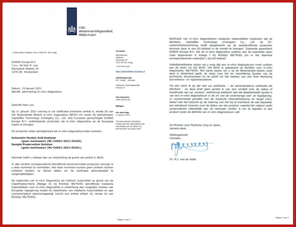 ? ? ? 近日,博奧晶典聯(lián)合清華大學(xué)成功研發(fā)的由新型冠狀病毒2019-nCoV核酸檢測試劑盒(全集成碟式芯片法),英文名稱:SARS-CoV-2 Nucleic Acid Detection Kit (Integrated Isothermal Amplification Chip Method)和全自動核酸分析儀,英文名稱:Automatic Nucleic Acid Analyzer組成的全集成芯片實驗室系統(tǒng)獲CE準入資質(zhì)(證書號:NL-CA002-2021-55957和NL-CA002-2021-55450),獲CE準入資質(zhì)表明該產(chǎn)品符合歐盟醫(yī)療器械相關(guān)指令的符合性要求,具備歐盟市場的準入條件,將為歐洲地區(qū)的新冠疫情防控工作提供高靈敏度全集成快速檢測工具。