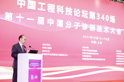 2021年10月14日,“中國(guó)工程科技論壇第340場(chǎng)第十一屆中國(guó)分子診斷技術(shù)大會(huì)”在上海市盛大開幕。會(huì)議由中國(guó)工程院、清華大學(xué)、生物芯片北京國(guó)家工程研究中心主辦,復(fù)旦大學(xué)附屬華山醫(yī)院、中國(guó)工程院醫(yī)藥衛(wèi)生學(xué)部、中國(guó)抗癌協(xié)會(huì)、中國(guó)醫(yī)藥生物技術(shù)協(xié)會(huì)生物芯片分會(huì)承辦,中華醫(yī)學(xué)會(huì)檢驗(yàn)醫(yī)學(xué)分會(huì)、中國(guó)醫(yī)師協(xié)會(huì)檢驗(yàn)醫(yī)師分會(huì)、中國(guó)醫(yī)院協(xié)會(huì)臨床檢驗(yàn)管理專業(yè)委員會(huì)、全國(guó)生物芯片標(biāo)準(zhǔn)化技術(shù)委員會(huì)、中國(guó)高科技產(chǎn)業(yè)化研究會(huì)協(xié)辦。
