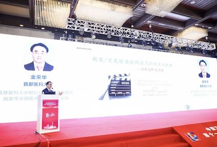 首都醫(yī)科大學(xué)附屬北京地壇醫(yī)院院長(zhǎng)、國(guó)家傳染病醫(yī)學(xué)中心(北京)主任金榮華教授作報(bào)告