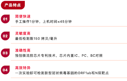 基于全新一代先進(jìn)的芯片實(shí)驗(yàn)室(Lab-on-a-chip)設(shè)計(jì)理念,化繁為簡(jiǎn),檢測(cè)時(shí)僅需將樣本保存液加入芯片,封閉芯片后即可上機(jī),手工操作小于1分鐘。生物反應(yīng)全程(包括核酸提取、核酸純化、擴(kuò)增反應(yīng)、核酸檢測(cè)和結(jié)果判讀等)均集成在一個(gè)整體密閉、內(nèi)部分區(qū)的微流控芯片內(nèi),由全自動(dòng)核酸分析儀完成,因此無(wú)需專業(yè)分區(qū)實(shí)驗(yàn)室,無(wú)需人工干預(yù),最大程度降低操作人員感染及樣本間交叉污染的風(fēng)險(xiǎn)。45分鐘完成實(shí)驗(yàn)全過(guò)程,最快可在35分鐘內(nèi)檢出新冠陽(yáng)性樣本,檢測(cè)靈敏度可達(dá)150拷貝/毫升,在截至目前國(guó)內(nèi)獲批的同類產(chǎn)品中靈敏度最高,真正實(shí)現(xiàn)“樣本進(jìn)-結(jié)果出”。