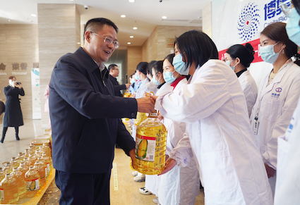 王誠(chéng)董事長(zhǎng)把慰問物品遞到大家手中,并送上誠(chéng)摯的新春祝福。他對(duì)大家在過去一年里攻堅(jiān)克難、勤奮工作,為博奧生物、四川能投創(chuàng)造的業(yè)績(jī),特別是為抗擊疫情所做的貢獻(xiàn)給予充分肯定,勉勵(lì)大家在新的一年再接再厲、乘勢(shì)而上,再創(chuàng)新佳績(jī)。