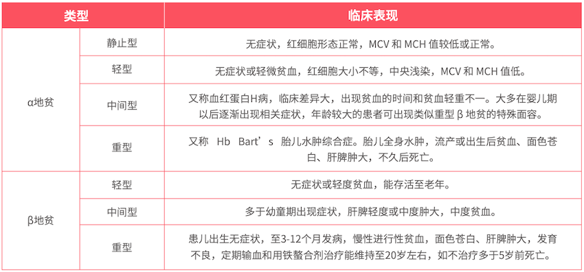 地中海貧血(簡稱”地貧”),是由于遺傳基因發(fā)生缺陷,導(dǎo)致紅細(xì)胞血紅蛋白合成異常,紅細(xì)胞容易破裂,壽命縮短,引起溶血性貧血,是我國南方常見和危害較大的遺傳病之一。常見的地貧類型:α-地貧和β-地貧。根據(jù)病情的輕重,又可分為:重型、中間型、輕型、靜止型。