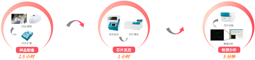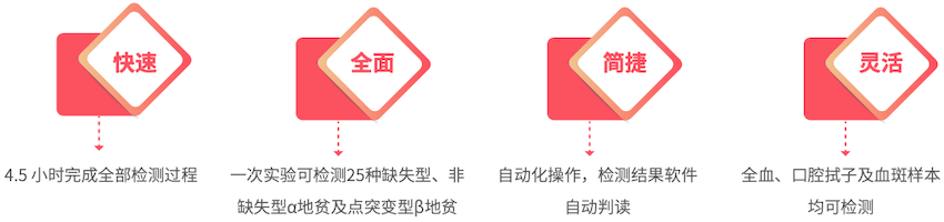 地中海貧血基因檢測試劑盒(微陣列芯片法)采用多重等位基因特異性 PCR 與通用芯片的技術(shù)對中國人最常見的地中海貧血基因突變位點及缺失片段進行檢測。可一次性同時完成 α- 和 β- 地中海貧血基因共 25 種突變的檢測,檢測結(jié)果可以輔助臨床診斷,也可用于流行病學(xué)調(diào)查、婚 檢及新生兒檢測等領(lǐng)域。