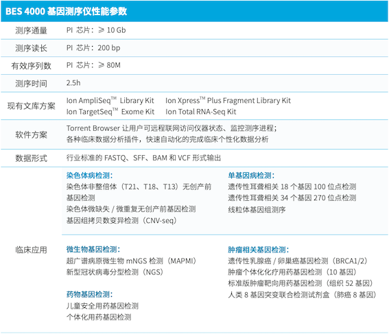 晶芯®BioelectronSeq 4000 基因測序儀(簡稱 BES 4000)是由博奧與美國 Thermo Fisher 公司合作在國內(nèi)研發(fā)、生產(chǎn)的新一代高通量測序儀。該款測序儀采用半導體芯片測序技術,結合臨床檢測試劑盒和自動化分析軟件,適合用于醫(yī)院獨立開展基因檢測工作。BES 4000 已于 2015 年 2 月獲得 CFDA 醫(yī)療器械注冊證(醫(yī)療器械注冊證號:國械注準 20203220502)。